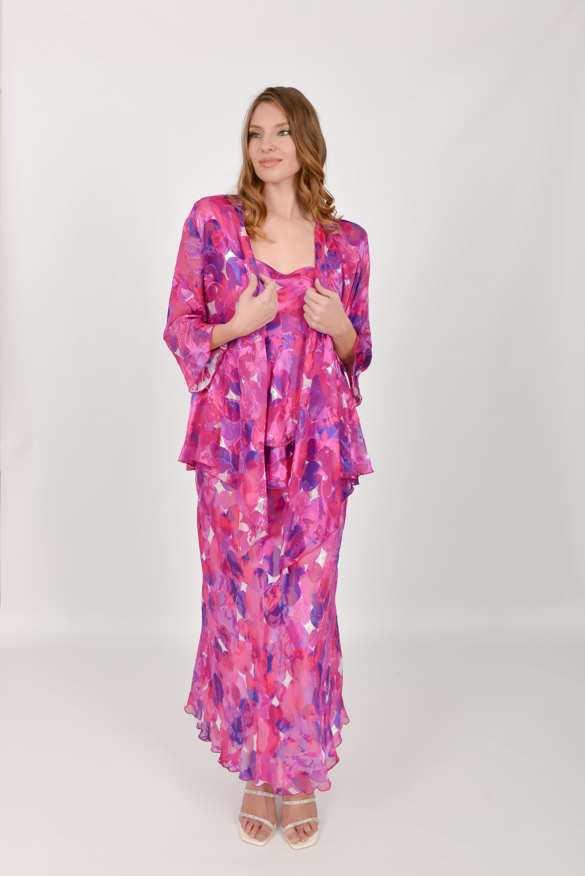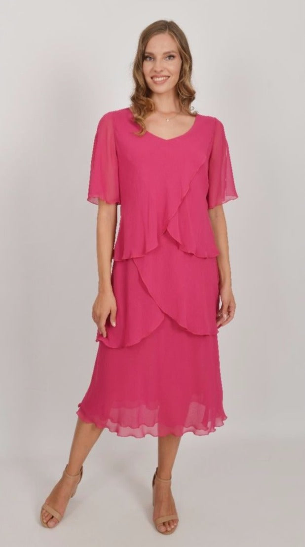 Fuchsia/Purple Pure Silk Layered Dress 61161