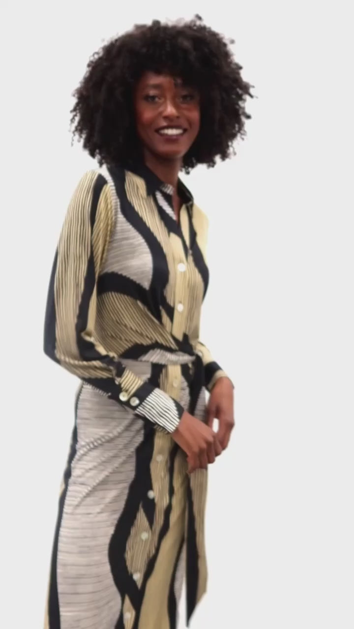 Beautiful midi dress with print and wrap belt of high-quality polyester together with elastane for stretch, this ensures that the dress is very comfortable to wear.