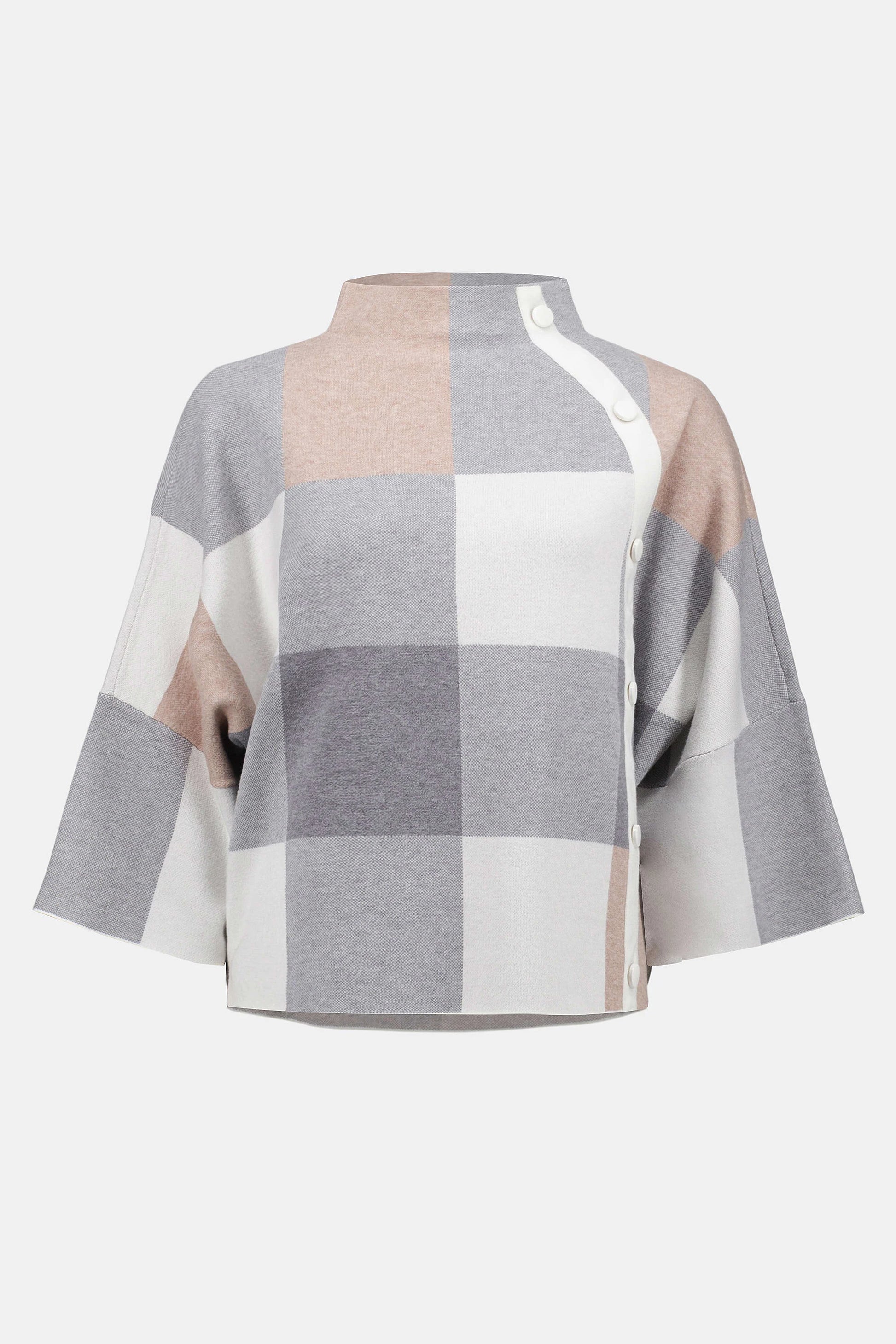 We all need a little check in our wardrobe. This cosy jacquard knitted jumper features a striking three-tone check pattern that's just as extraordinary as its design.