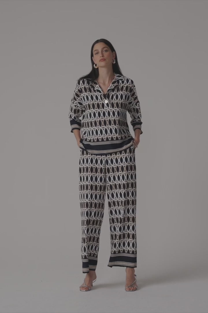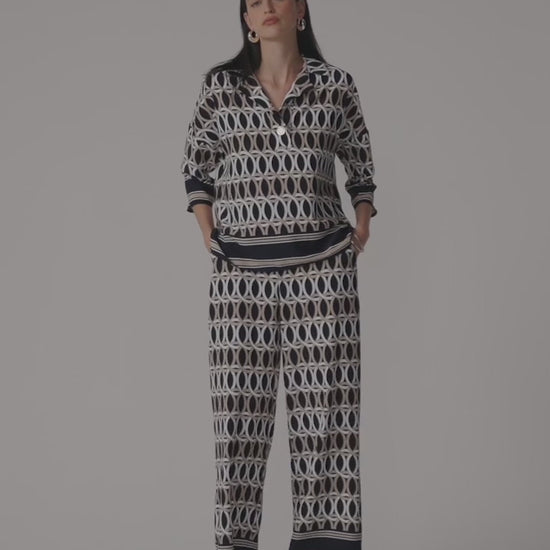 Geometric Print Wide Leg Pull-On Trousers
