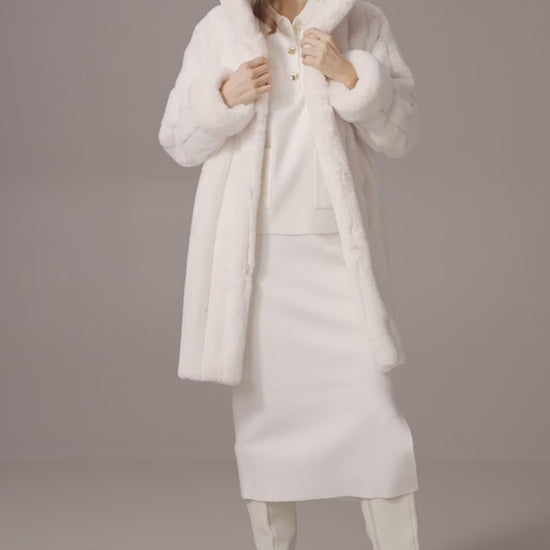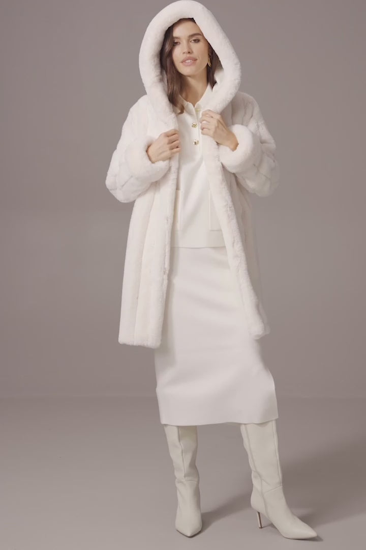 Wrap yourself in unparalleled comfort with this faux fur hooded jacket—so irresistibly soft and warm, you’ll never want to take it off. Designed for versatility, this reversible piece features a plush attached hood to keep the chill at bay, a button-front closure, and practical front pockets. Fully lined for added cosiness, this above-the-knee coat is a luxurious must-have for your winter wardrobe.