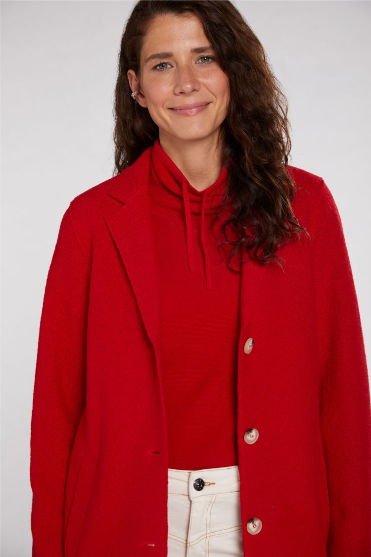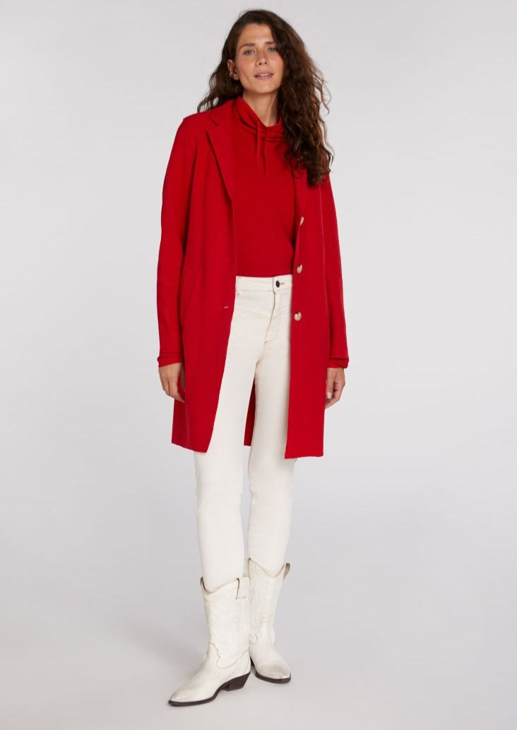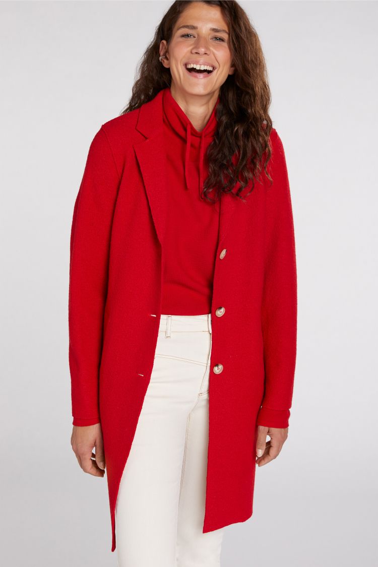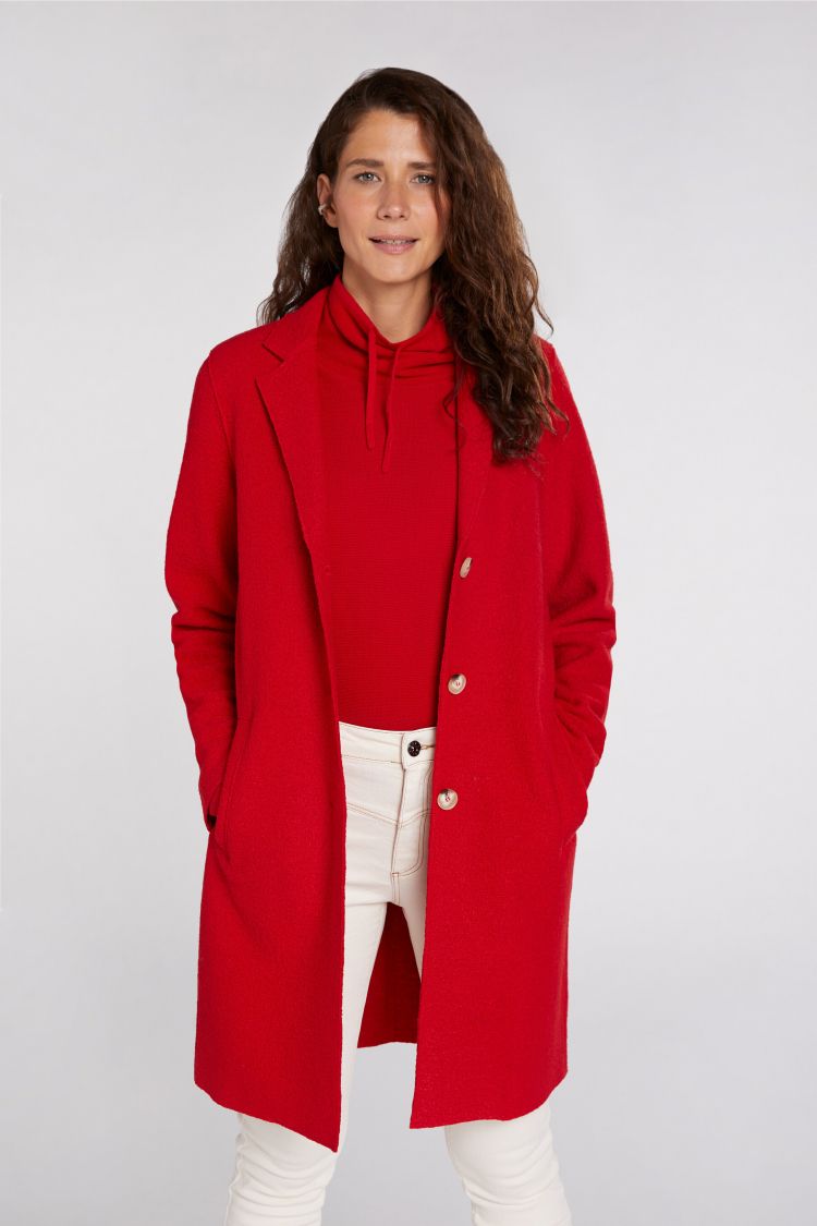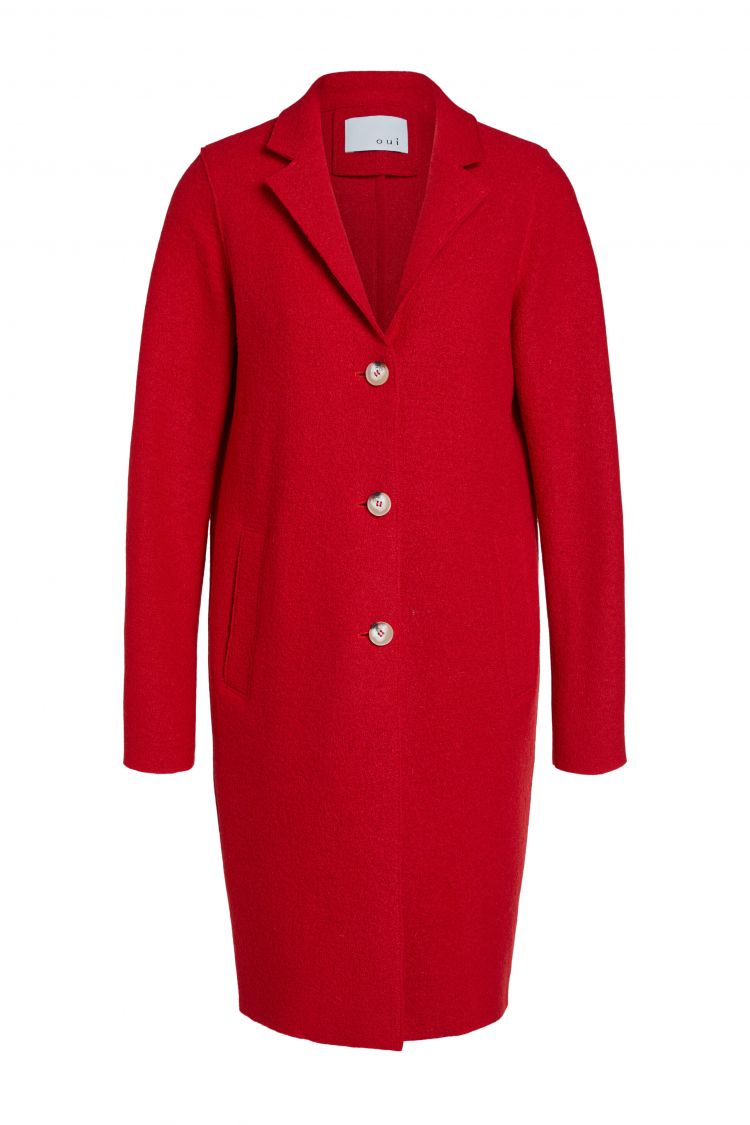 A timeless staple wool coat by German designer Oui, where the luxurious warmth of wool meets the casual comfort of a cardigan.