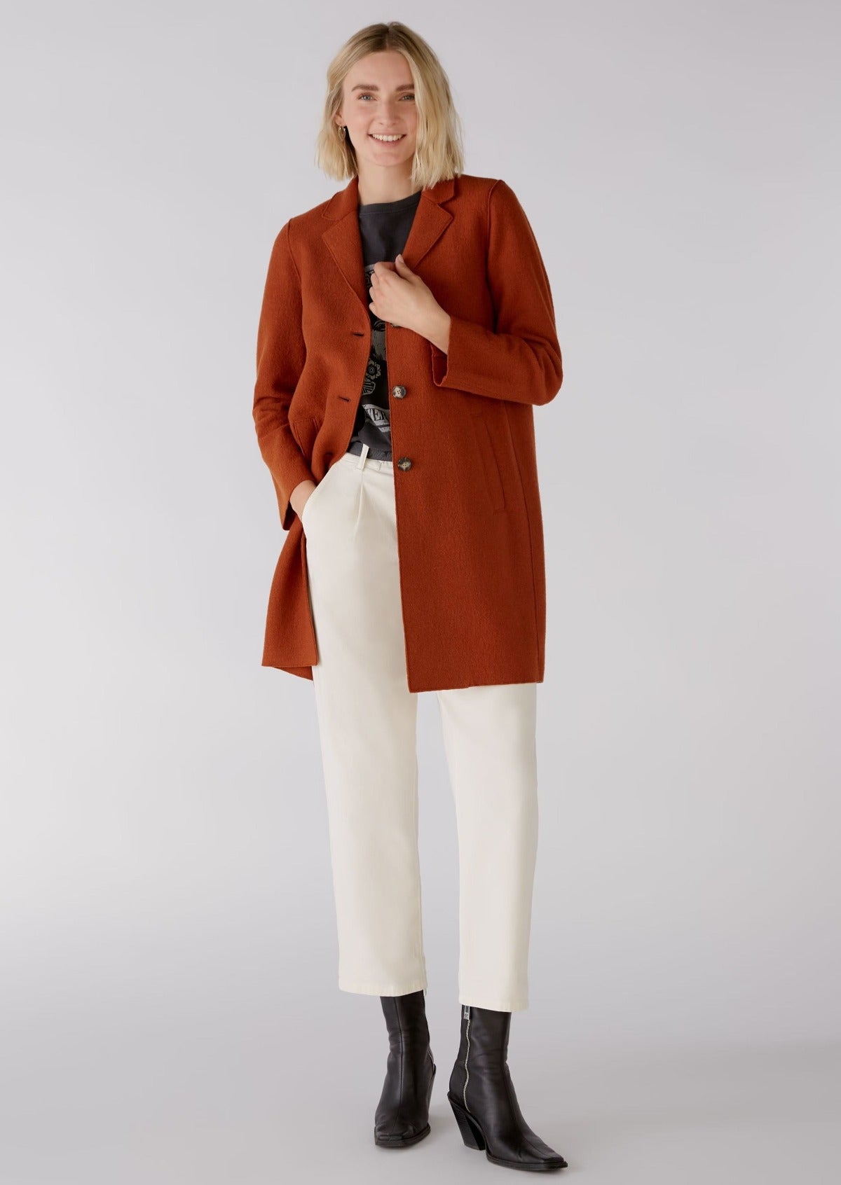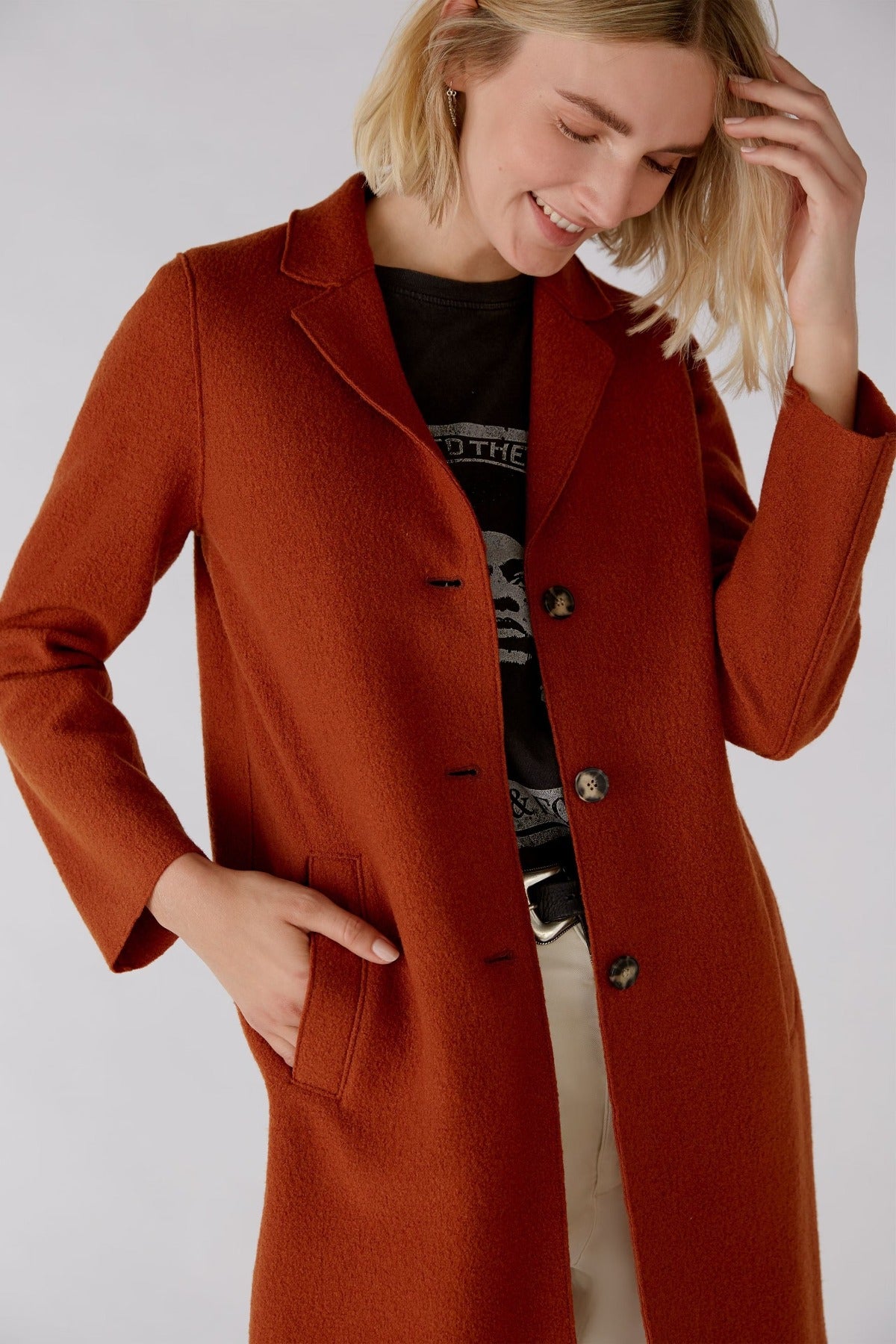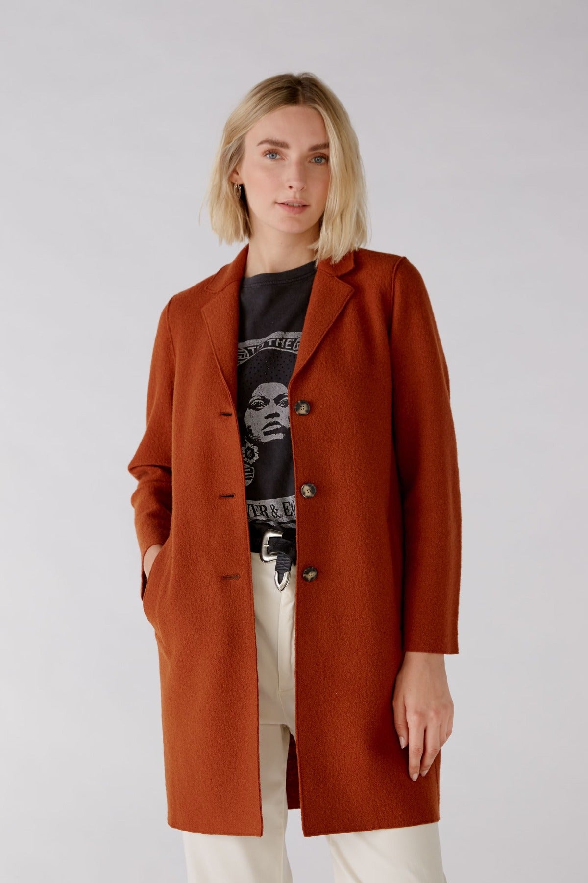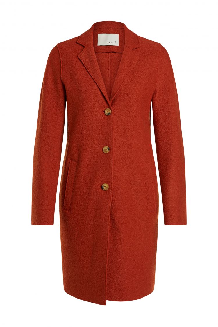 A timeless staple wool coat by German designer Oui, where the luxurious warmth of wool meets the casual comfort of a cardigan.