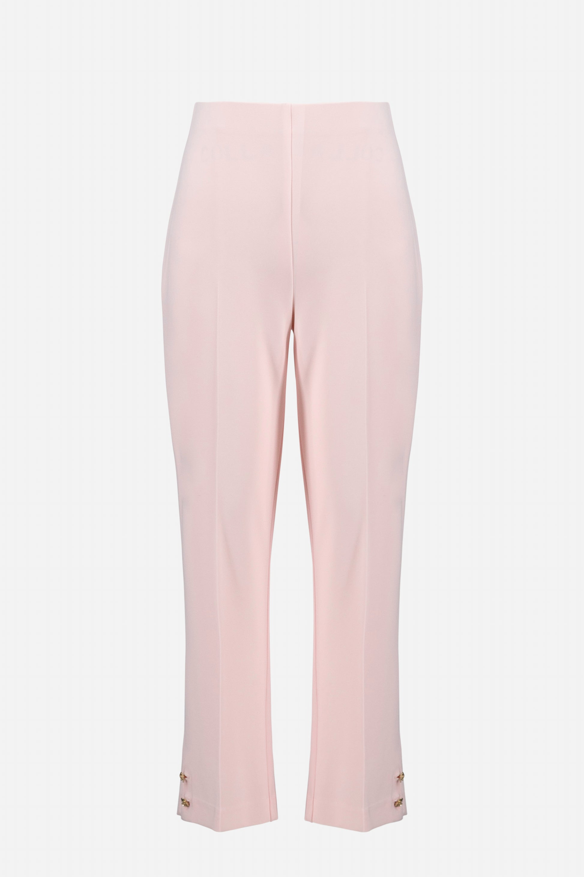 Every step catches the light with these cropped silky knit trousers by Joseph Ribkoff. A gentle bootcut shape sets the tone, while side seam hems are finished with gold rose buttons for a refined touch.