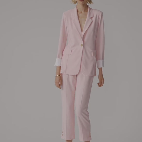 Pink Crop Pull-On Trousers With Gold Buttons
