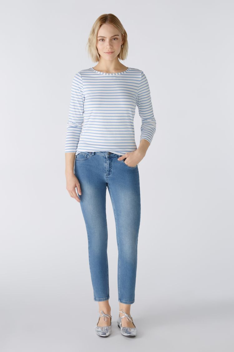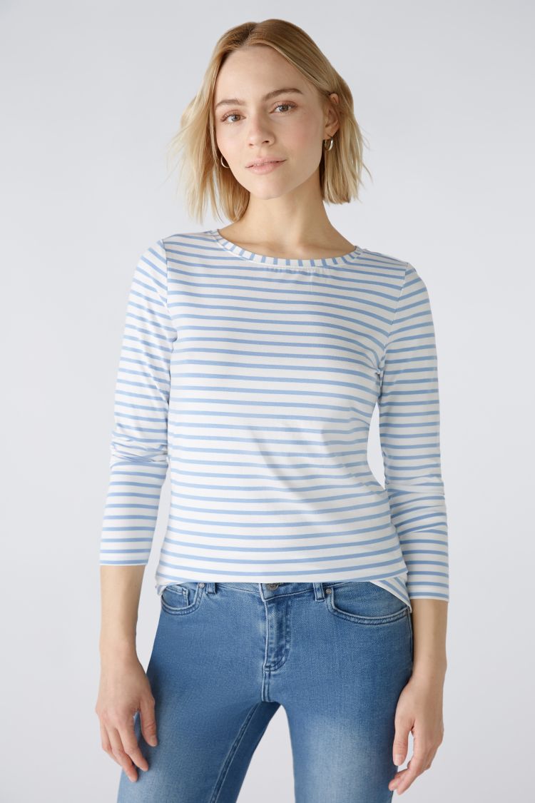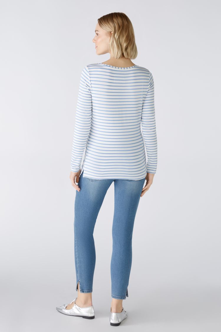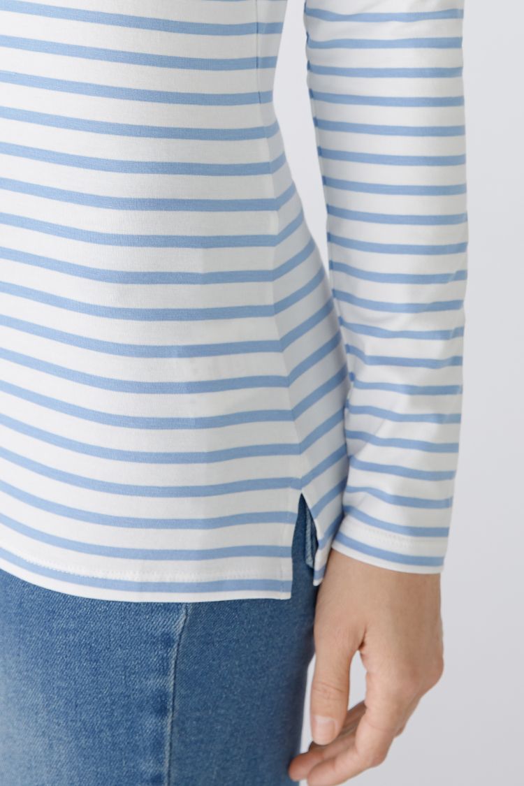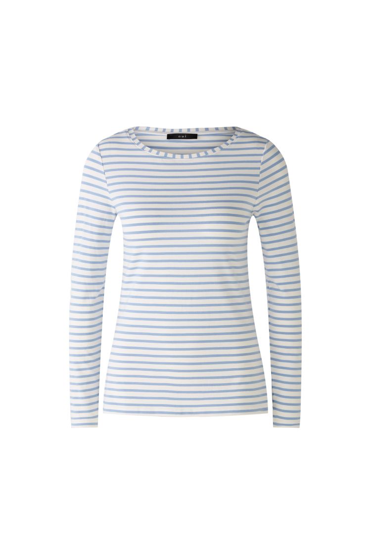 This Oui basic top features long sleeves and is made with a comfortable round neck and long sleeves. The classic white and blue striped design adds a touch of sophistication.